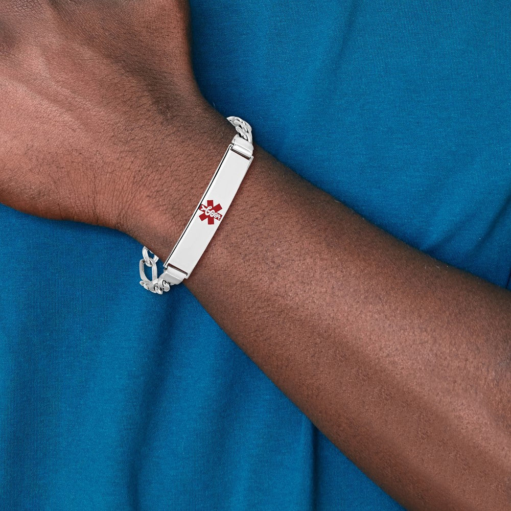 Sterling Silver Polished Medical Figaro Anchor Link ID Bracelet
