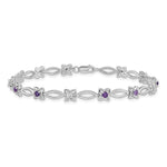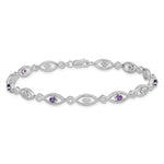 Sterling Silver Rhodium-plated Amethyst & Diamond Bracelet