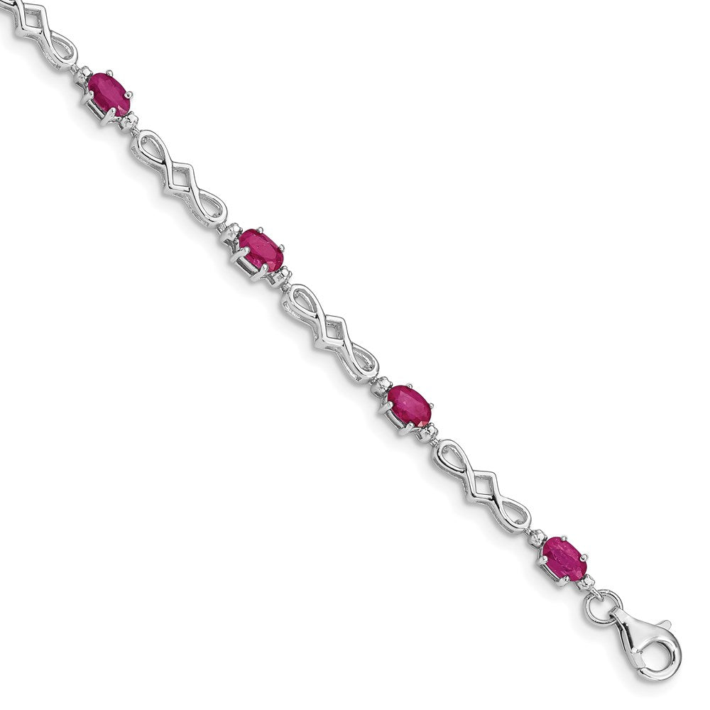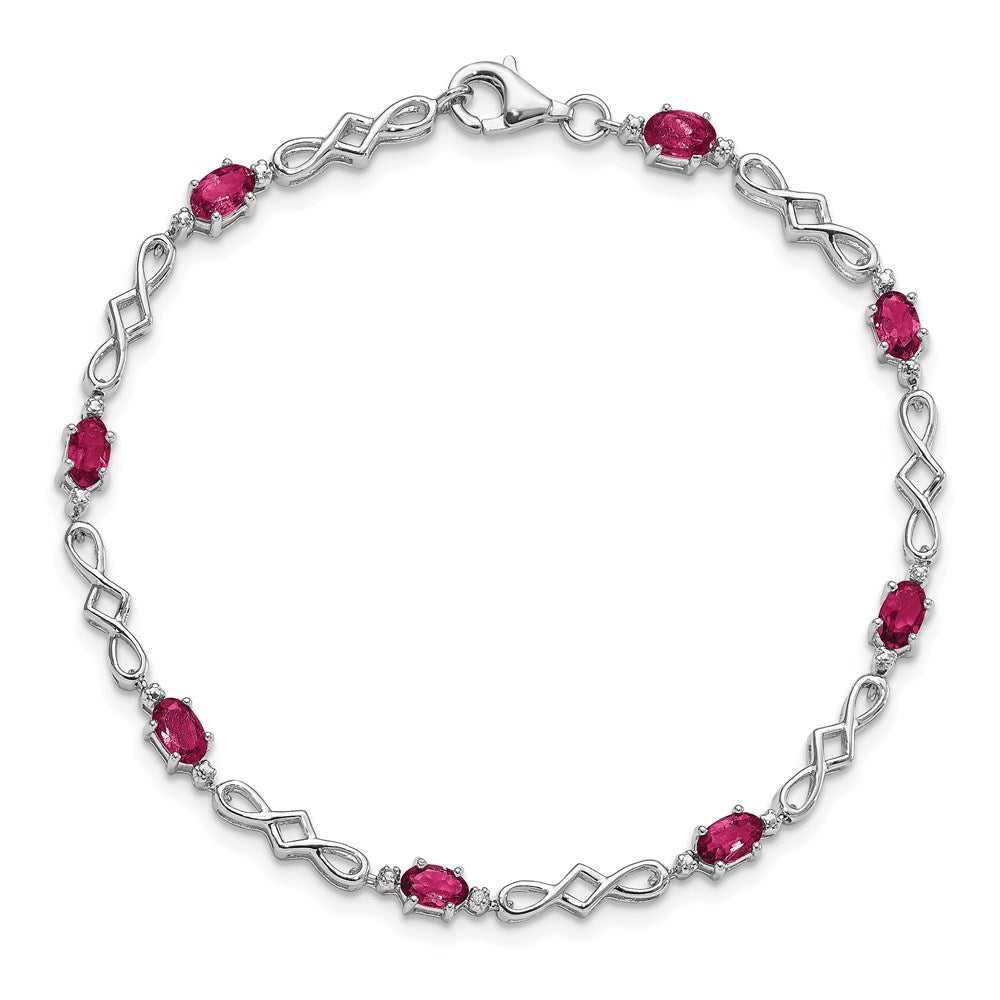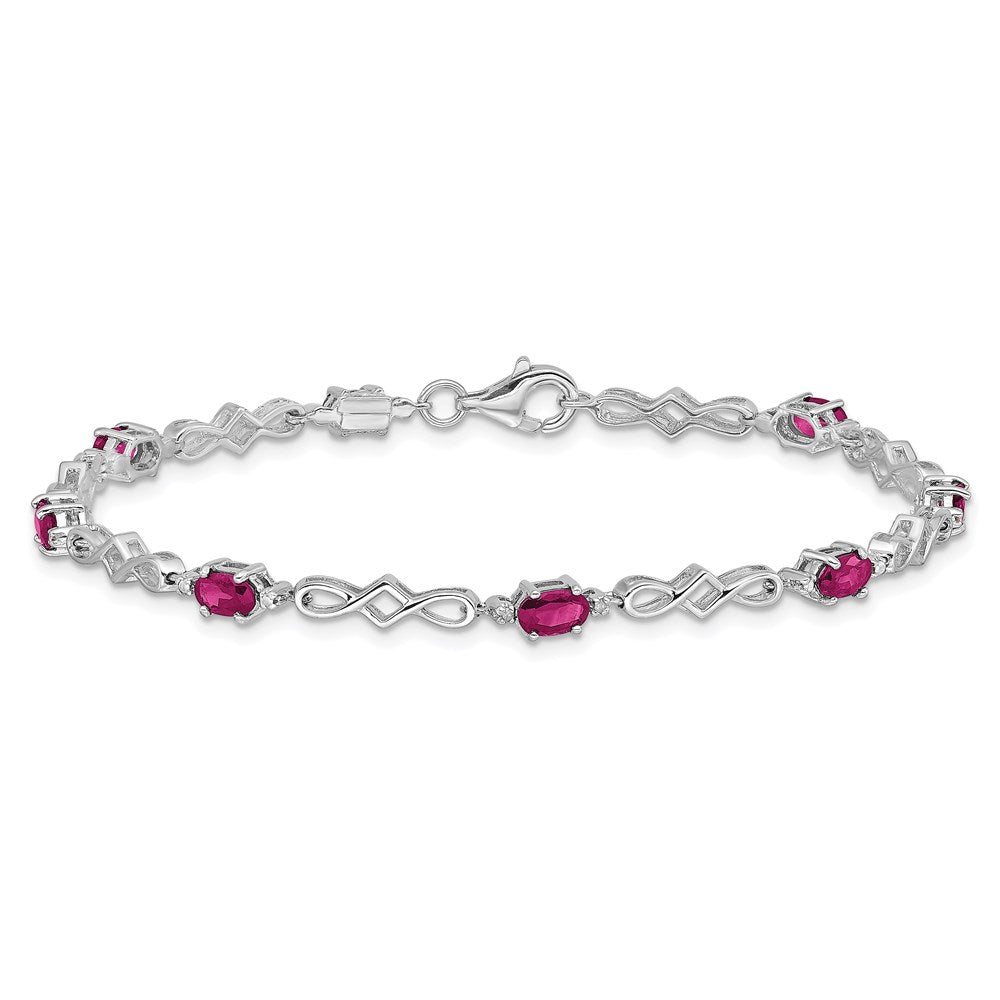 Sterling Silver Rhodium-plated Composite Ruby and Diamond Bracelet